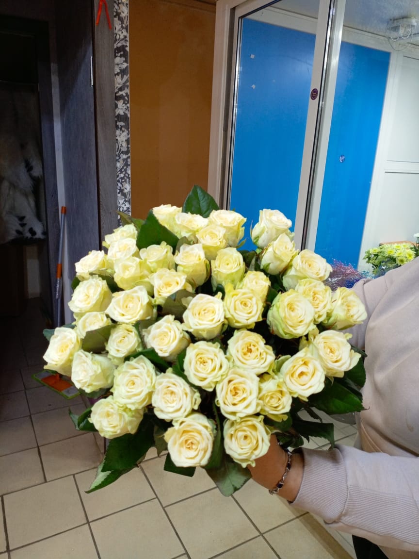 Белые розы 43 штуки высота 70 см. Цена 4500 рублей